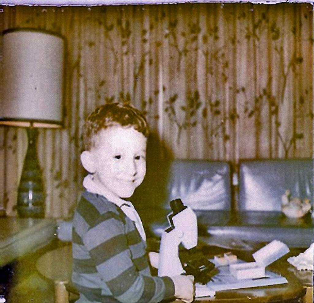 My boyhood self with my first scientific instrument (Photo Credit: Stern family).