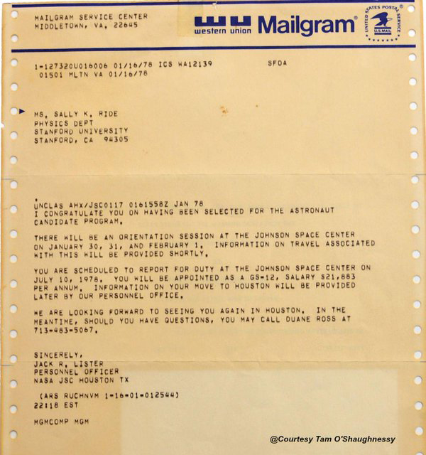 but getting a telegram saying you have been selected as an astronaut is really cool. Reminds me a story on slashdot (I think) where someone had a friend who got their PhD but couldn’t make it to the celebration party. Sent a telegram (shortly before WU stopped sending telegrams), WU person knocked on the door while the party was in progress, “telegram!” The new doctor thought that was so cool. Saved and framed it for her office.