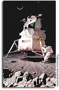 Indeed, the painting on the right, by Norman Rockwell, is one of many artistic compositions commissioned and enabled by NASA with the intent of conveying the Apollo program to a wider audience. At the time, as a young boy, I saw this image as future reality. That’s what SciFi often does, right? Then NASA makes it real.